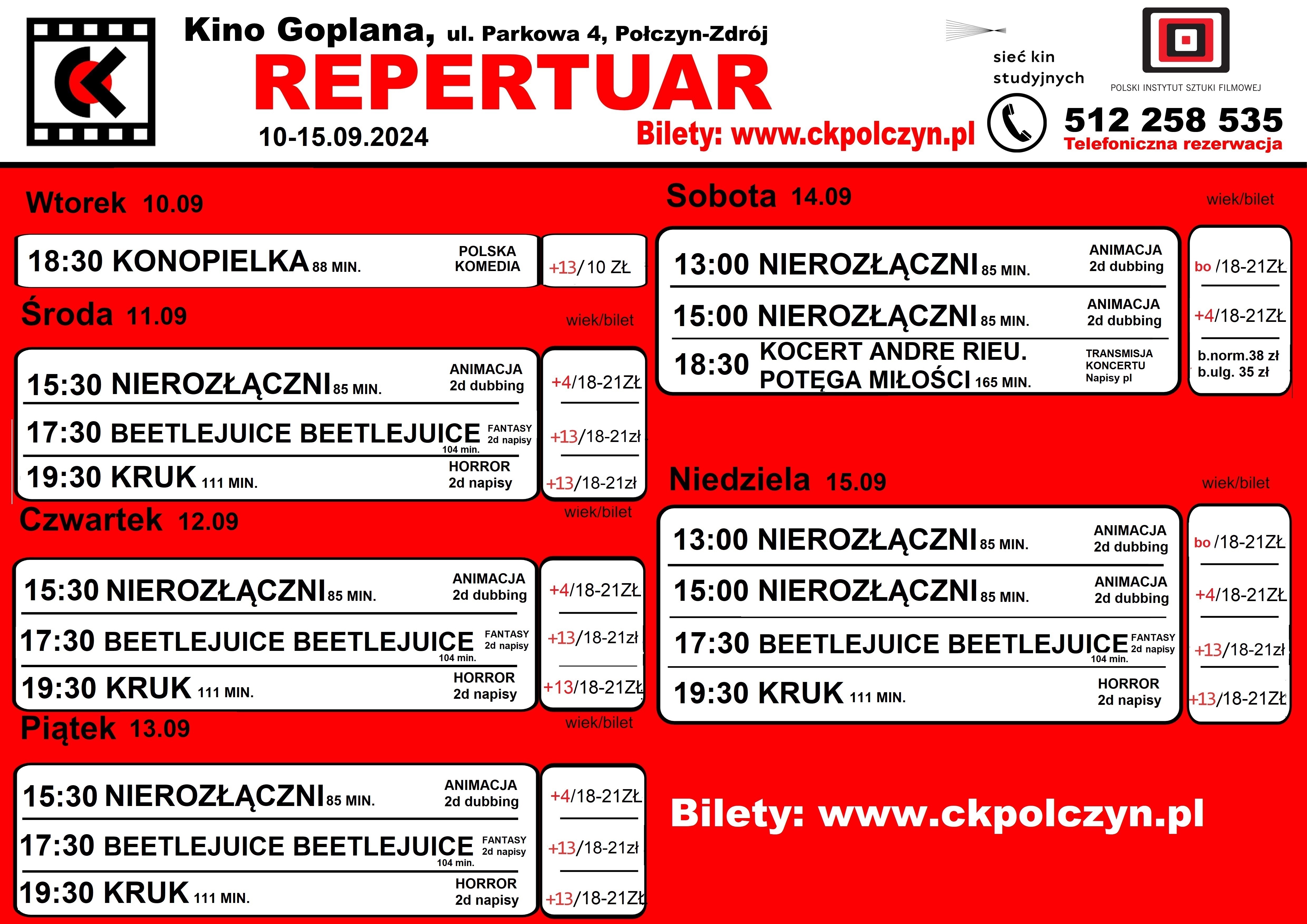 Kategoria: Kino Goplana, Repertuar